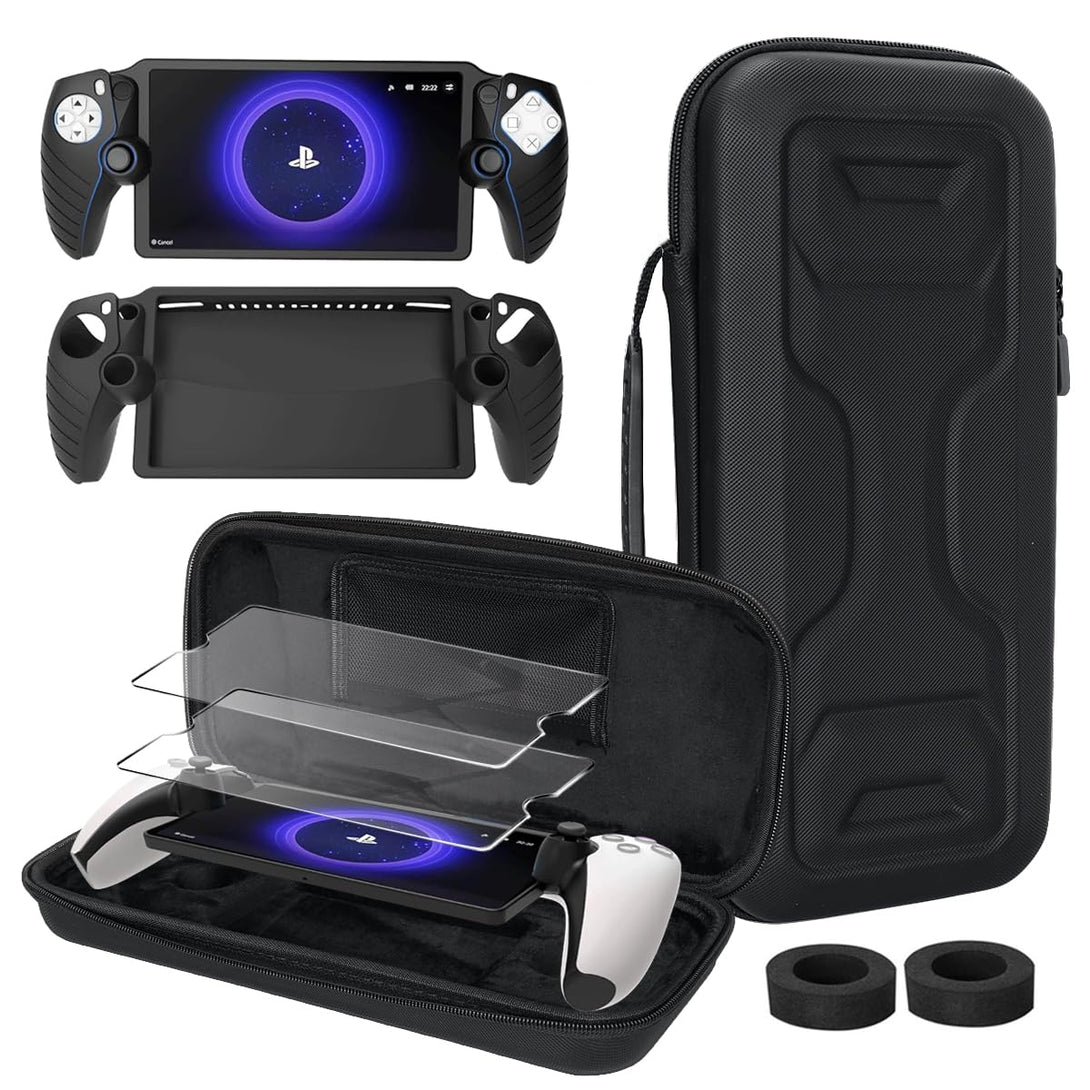 - Accessories Bundle for PS Portal - Our 6 in 1 Accessories Bundle is tailor-made for your Playstation Portal with a hard carrying case for easy storage and travel. The silicone protective cover and tempered glass screen protector ensure all-around protection. Bundle includes a travel carrying case*1, silicone protective cover*1, screen protector*2,Precision Rings*2
