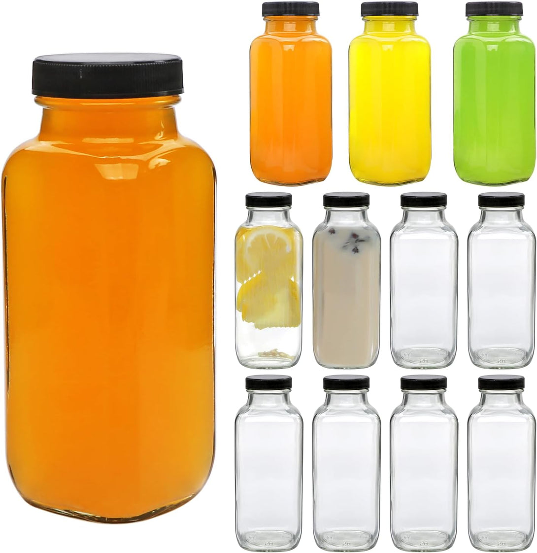 • Combo Set: Each set contains 12 square glass bottles made of food-grade materials that are strong and durable. It comes with 12 plastic black lids, black stickers and a stylus. Suitable for your daily use and on the trip.