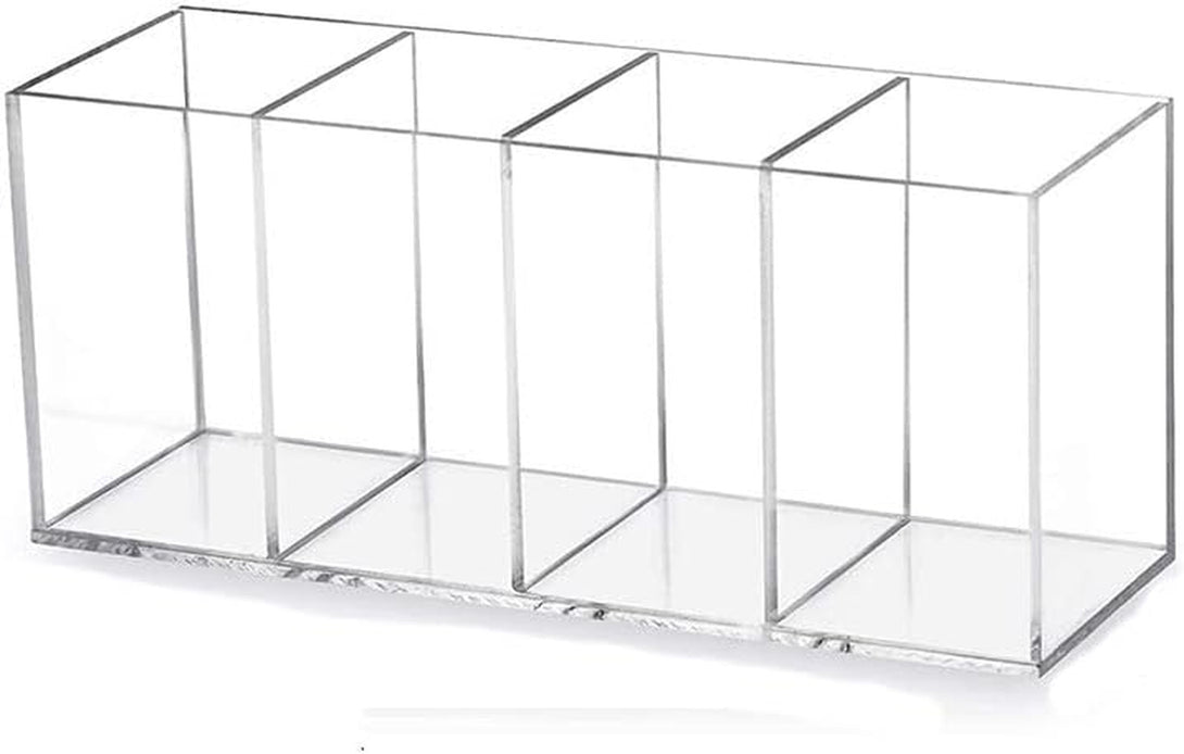 Acrylic Pen Holder 4 Compartments Clear Pencil Holder Organizer Makeup Brush Holder