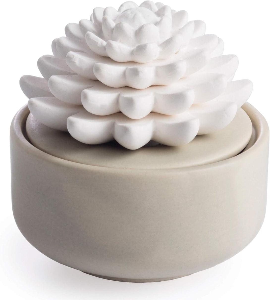 Airomé White Succulent, Porcelain Passive Essential Oil Diffuser (With 15Ml Peppermint Essential Oil) – Non-Electric, Battery-Free, Improves Sleep, and Relieves Stress