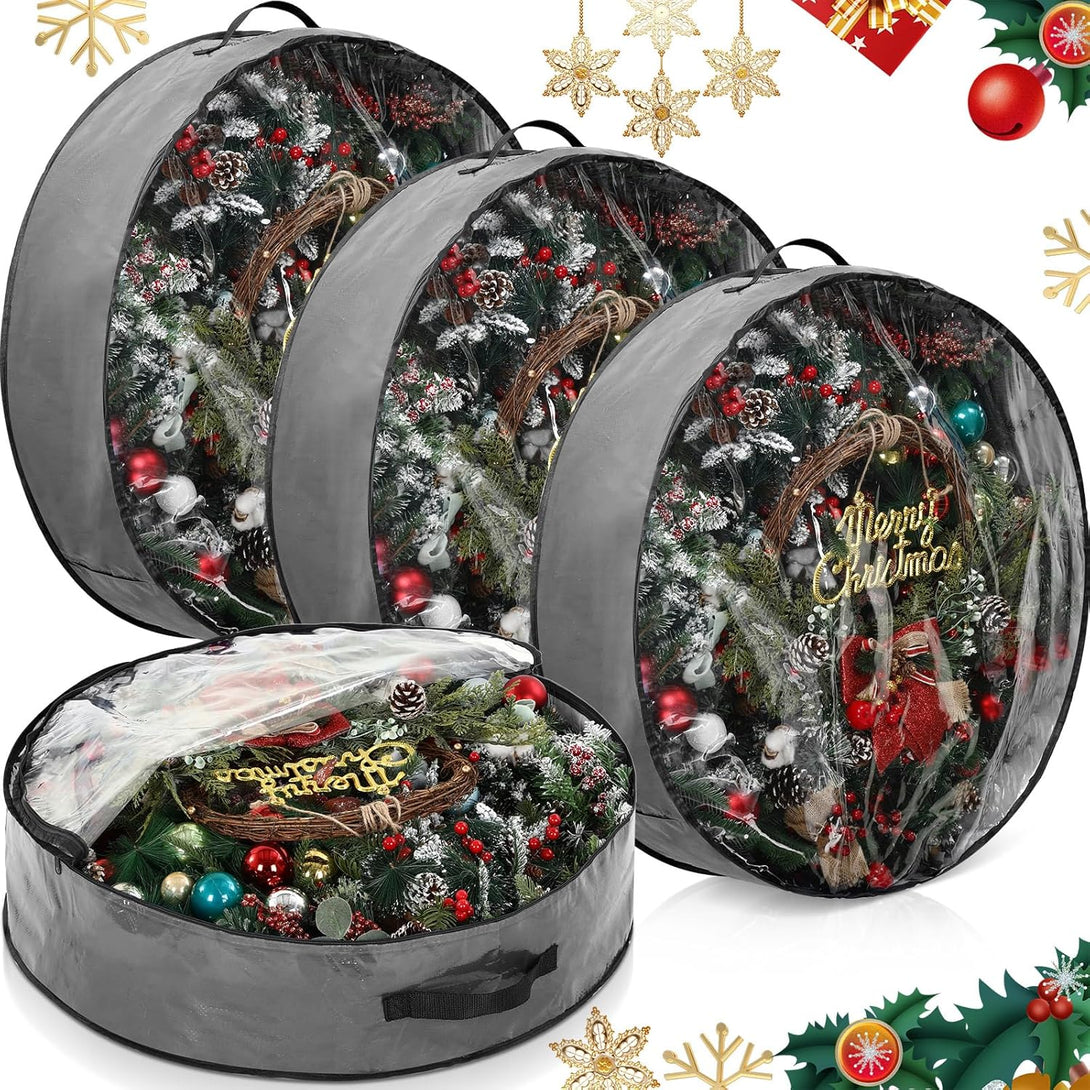 Aliceset 4 Pack Wreath Storage Containers, Storage Bags with Window and Handles, Durable Decoration Box Holder for Holiday(36 X 36 X 7.8 Inch,Gray)