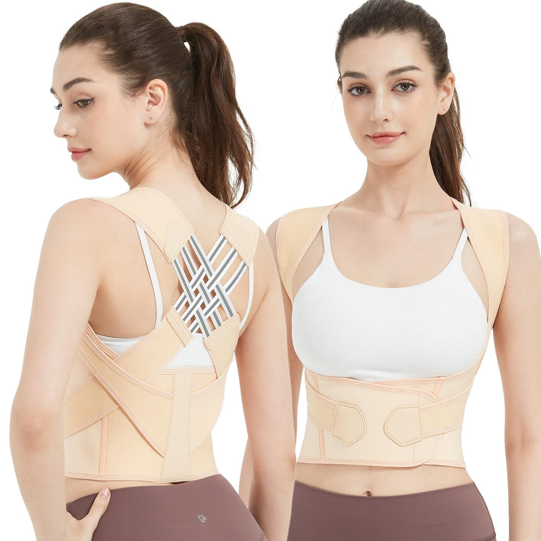 Back Brace Posture Corrector for Women and Men,Instant Posture Corrector Adjustable Back Full Support Straightene Beige