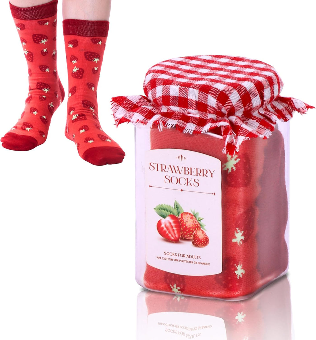 Pop Craze -1 Pair Strawberry or Blueberry Jam or Honey Socks in a Jar. Novelty Food Socks. for Men and Women.Stocking Stuffer