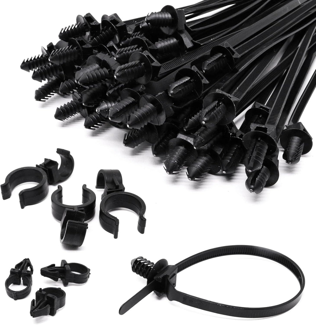 - PREMIUM QUALITY MATERIAL: The self locking automotive zip ties are made of high quality nylon material, which has strong toughness, and anti-aging, and still maintains toughness at -40℉ to 266℉. Meanwhile, these push mount zip ties have good flame retardancy, high tensile strength and longer service life