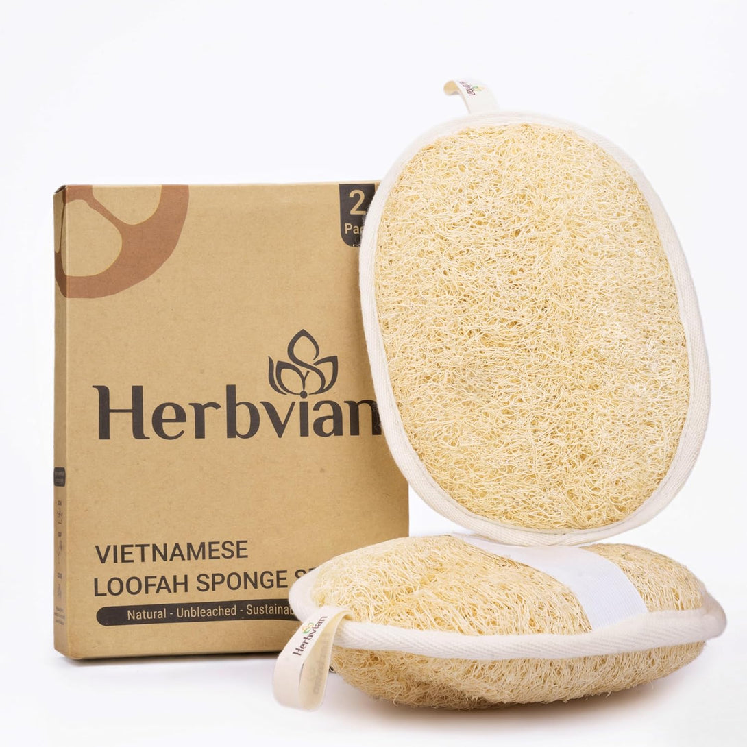 Vietnamese Natural Loofah Exfoliating Body Scrubber Pads, 100% Plant-Based Shower Luffa Sponge, Bath Loofah for Women Men, 2-Pack