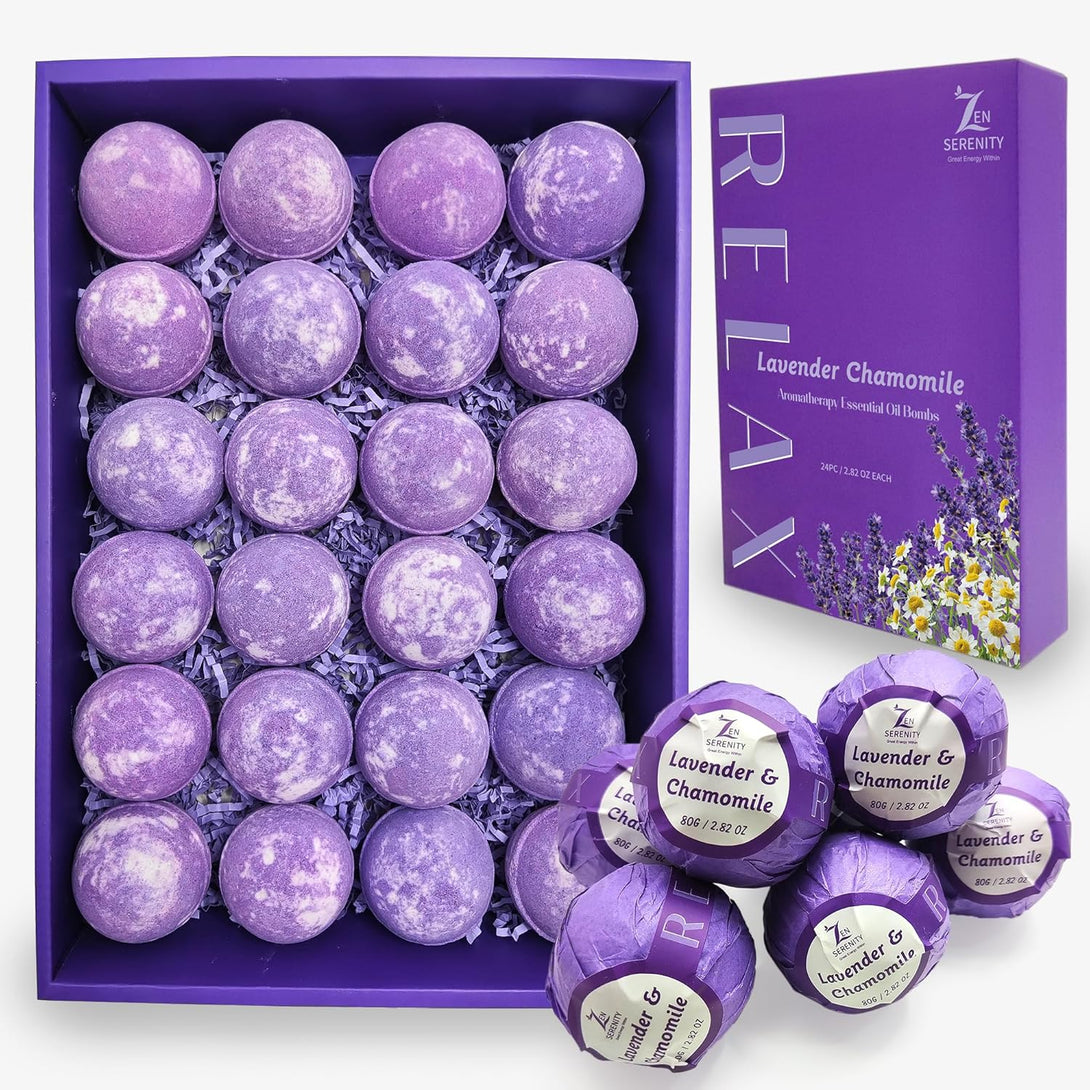 Zen'S 24-Piece Lavender & Chamomile Bath Bombs for Women Men & Kids. Handmade, Natural & Organic for a Relaxing Bath Gift Set Lavender Essential Oil